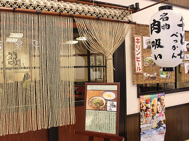 劇場の1階には大阪ならではの味が楽しめる飲食店もスタンバイ。芸人さんがこよなく愛する「肉吸い」が食べられる「千とせ」もある。肉吸いとは、関西風のあっさりしたうどんだしに肉が入ったもので、二日酔いの吉本の芸人さんが「肉うどんのうどん抜きで」と注文したのが始まり。肉吸いに玉子かけご飯を付けるのが、芸人さんの楽屋ごはんだ。ほかにもあやし~い雰囲気がただよう「怪獣酒場」や、ふわふわとろとろのタコ焼き「大阪アメリカ村甲賀流」などがある。