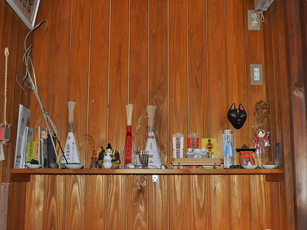 お店を開くときから、そう感じる不思議なできごとが多くあったという、マスターの古田さん。そんなこともあって、お店の入り口横には、なんと神棚があります。伏見稲荷大社をはじめ、日本の神社にまつわる書籍もブックコーナーに並んでいるので、手に取ってみてみるのも楽しいです。