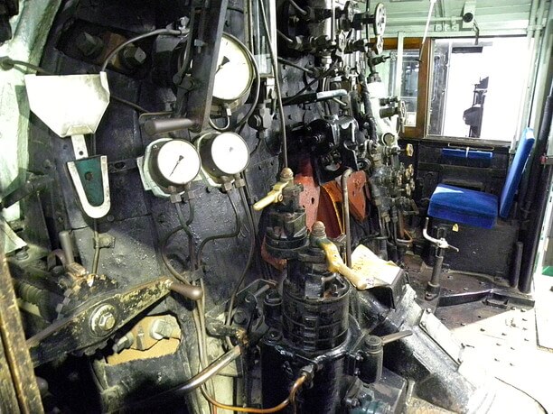 また、静態保存の機関車の運転席は解放されています。実際に乗ってみると運転席はとても狭い!窮屈な運転席で石炭を真っ赤に燃やしての運行が、いかに大変だったか、当時の苦労が伺えます。