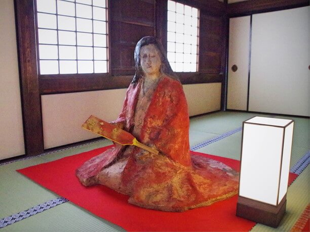 化粧櫓には、乾漆といわれる麻の布に漆を塗り重ねる技法で制作された「千姫色彩乾漆座像」がある。千姫と本多忠刻の成婚400年を記念し寄贈されたものだ。