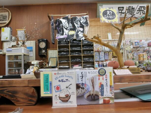 中村家をひと通り見て、おみやげ品店に立ち寄ると、お茶と黒糖ゼリーのサービスがあります。この黒糖ゼリーが中村家一番のおすすめで、お客様からも大人気。