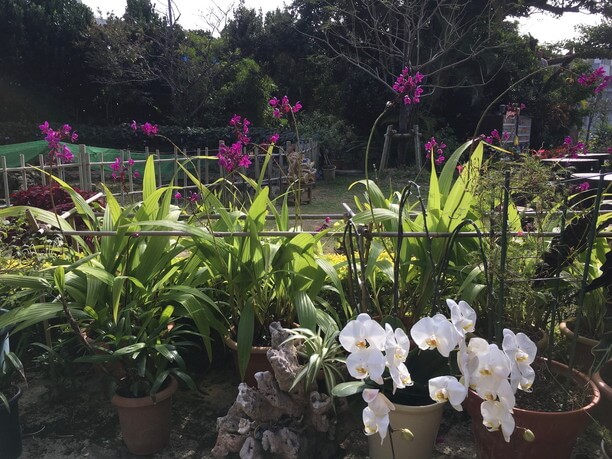 中村家の周辺地域には、地域作りに関心のある55歳以上の男性達で結成した「大城花咲爺会」があり、花と緑に囲まれた芸術の里作りに励んでいます。沖縄花のカーニバルが開催されている1月下旬〜5月中旬ごろは、お散歩するのにぴったりです。