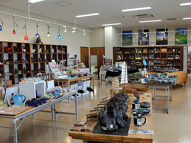 館内にはウージ染めの他にも、県内で活躍する工芸作家の作品が