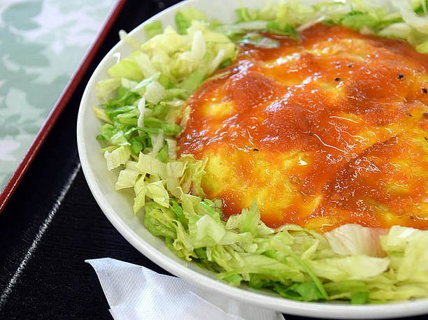上にかかっているソースも豊見城産トマトを使ったこだわりよう。