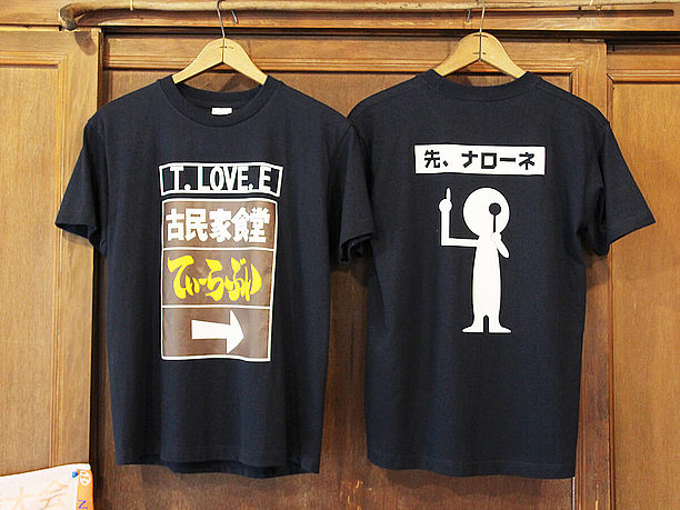 とそんな店内の壁に謎のTシャツが!販売しているのか伺ってみると、「販売はしてませんが、希望者がいたらオーダーメイドで作りますよ、2,160円です!笑」とのこと。毎夏、浜比嘉島で開催されるハーリー競争に参加する際、チームで制作したTシャツだとか。