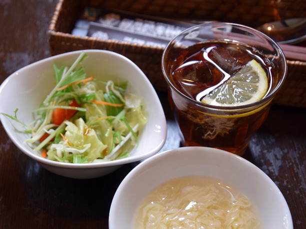 すべてのランチメニューはサラダ、スープ、ドリンク付きなのもうれしい