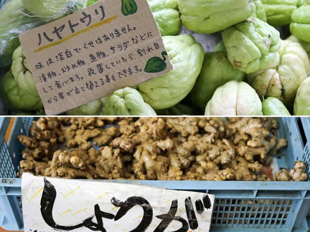 定番の島野菜をはじめ、紫大根やハヤトウリなどの少し変わった野菜にも出合えます。地元の人で賑わうローカルな雰囲気も素敵です。