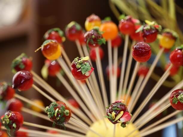 通常のランチビュッフェとは異なり、ひと口サイズのオードブルが充実しているのも魅力のひとつ。生ハムや鴨のスモーク、塩気のほど良いチーズはお酒との相性抜群。食材の彩りや華やかなデコレーションにテンションが上がります。