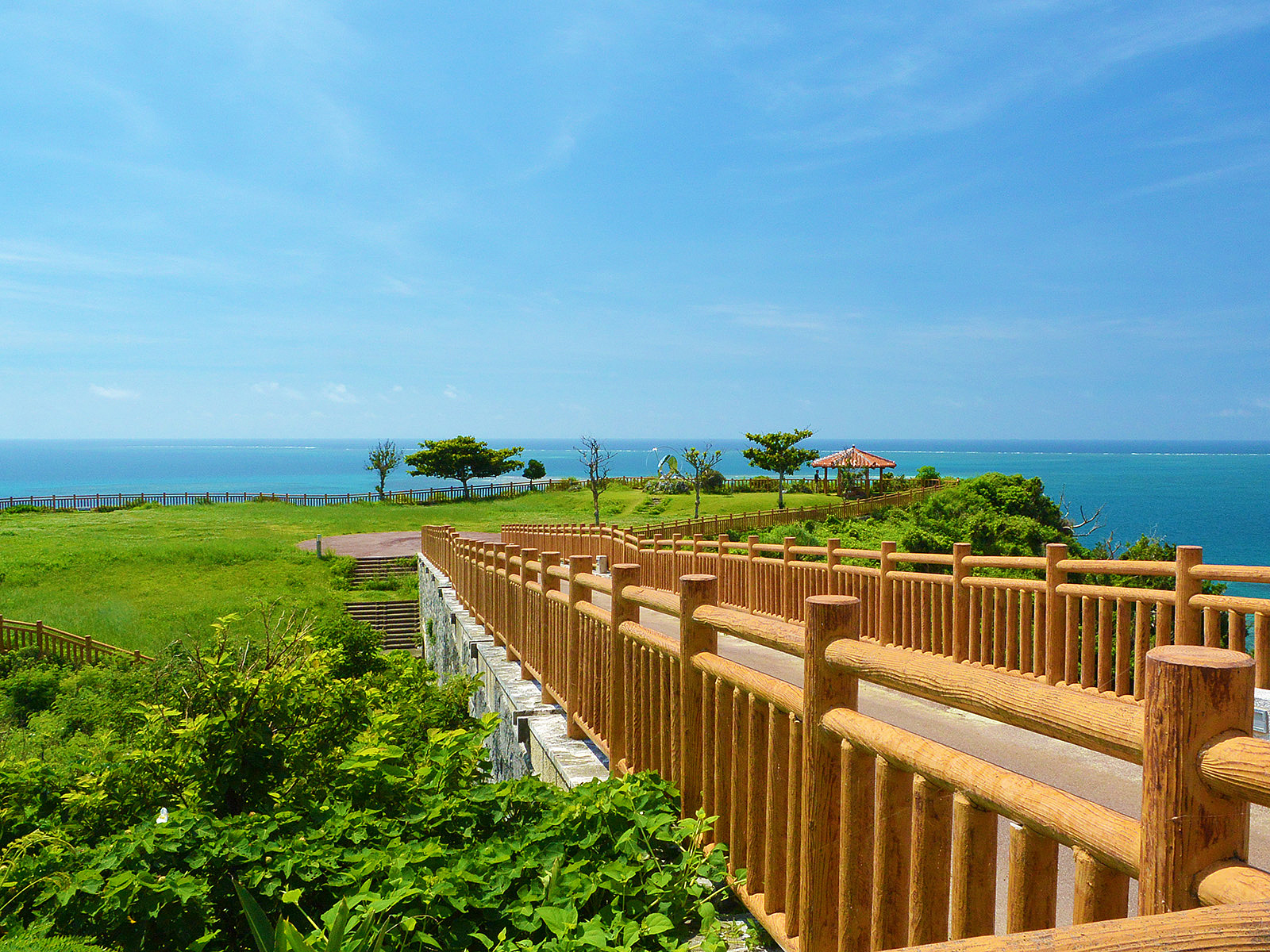 歩いて3分の所には地元の特産品を楽しめる「がんじゅう駅南城」があるほか、山手には知念岬公園と同じく絶景ポイントとして知られるニライカナイ橋がある。更に、世界遺産である斎場御嶽も徒歩圏内にあるので合わせて行くことをお勧めします。