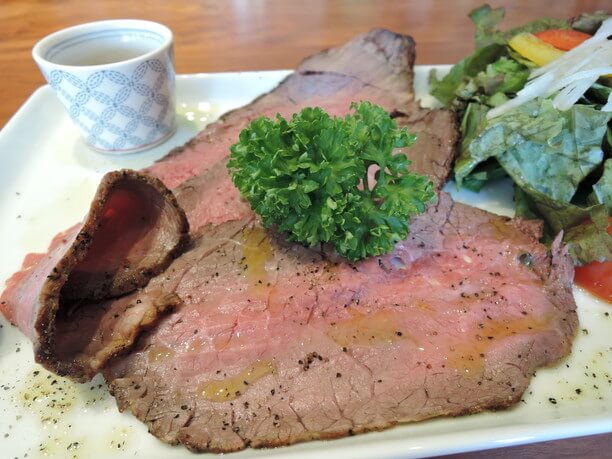 贅沢にスライスされた肉厚が嬉しいローストビーフ