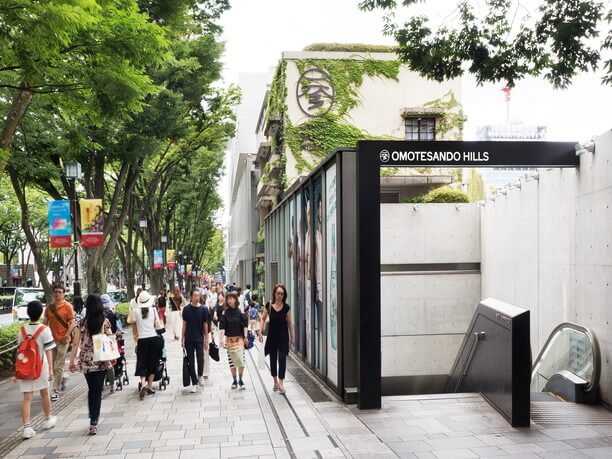 JR「原宿駅」表参道口からケヤキ並木を歩いていくと7分ほどで表参道ヒルズが見えてきます。ケヤキ並木と高さを揃え、低層ながらも約100店舗ものショップがあり、地下4階には駐車場(182台収容)もあります。巨大な吹き抜けとゆるやかなスロープは参道を歩く感覚と同じように気持ち良くお買物ができます。近代的な建物でありながら街に溶け込んでいる表参道ヒルズ。ハイクオリティな感覚に刺激を受けるでしょう。